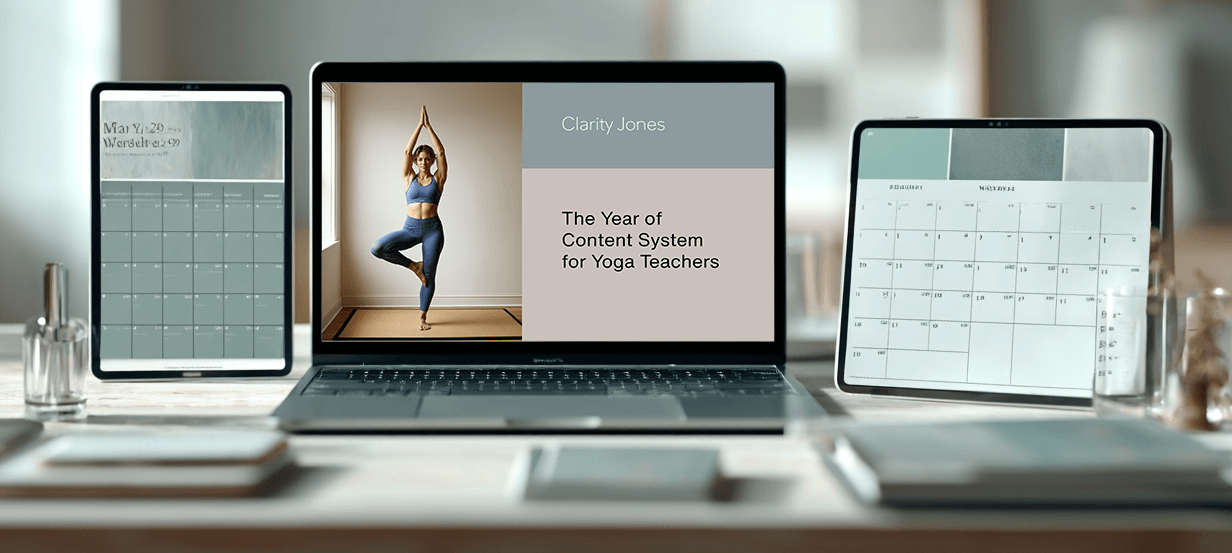 The Year of Content System for Yoga Teachers is a self-paced digital resource designed to help you plan consistent, high-impact content—without the stress or guesswork