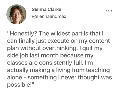 …All while spending less time on content creation and more time doing what they love — teaching, practising, and building their careers…