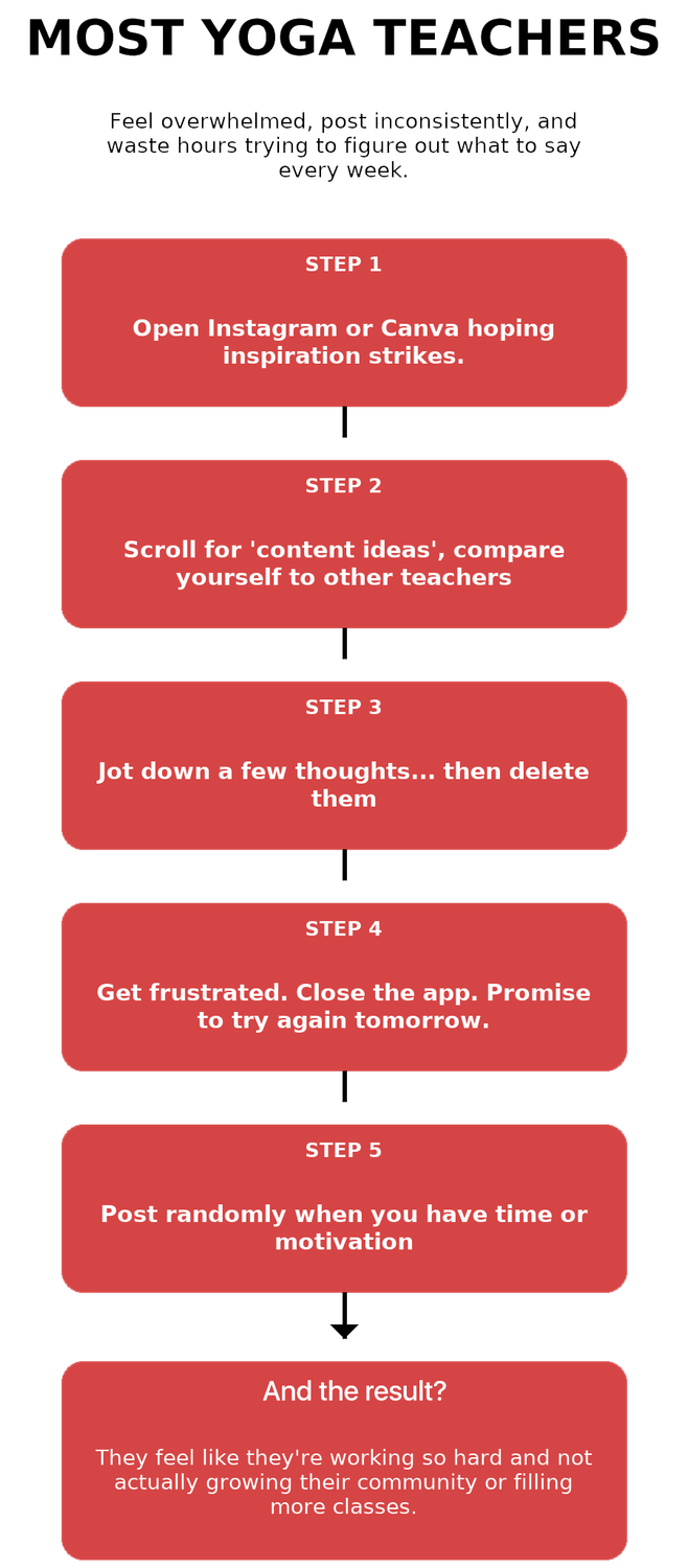 Because here's what I know: You didn't become a yoga teacher to become a content creator. But without content, you're invisible. And invisible teachers have empty mats.