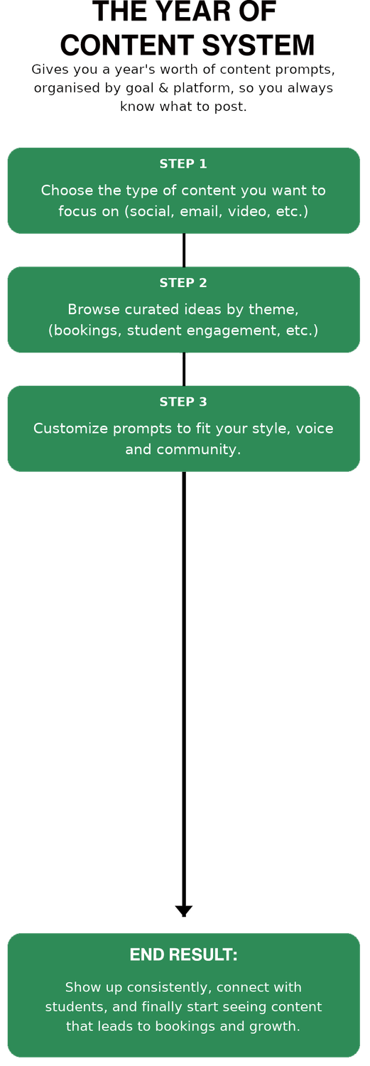 ✓ The exact system I've used to help yoga teachers stay consistent and build a community—all year long
