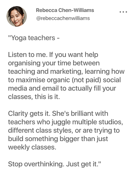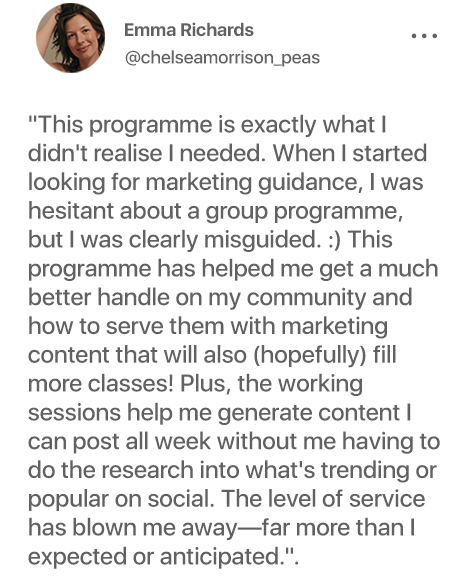 Would it surprise you that I've helped yoga teachers finally stay consistent with their content, grow their communities, and fill their classes—all while spending less time on marketing—using the exact system revealed in this programme?